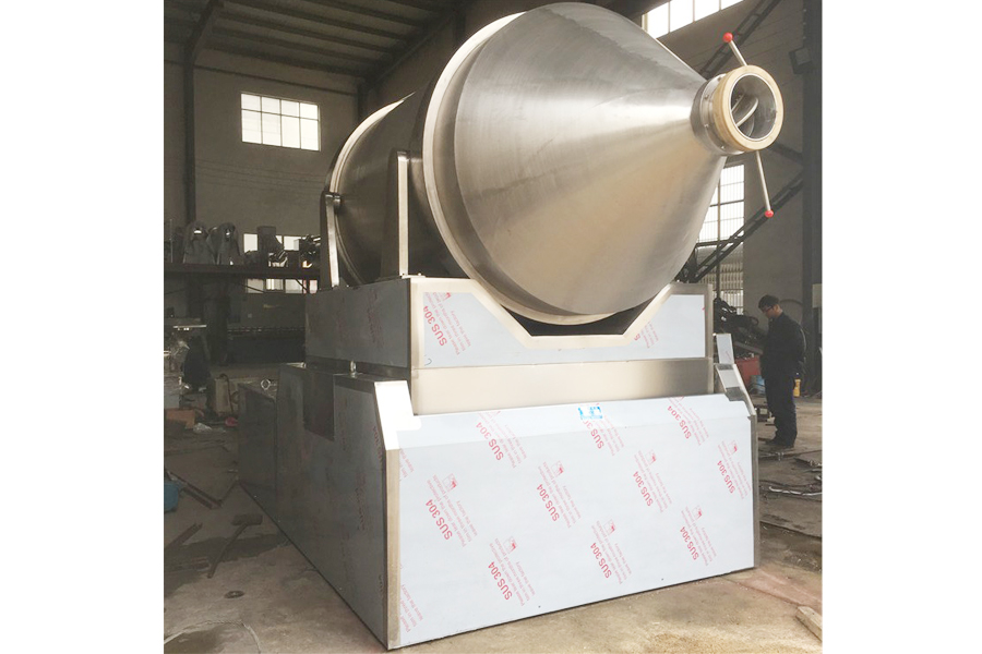 EYH系列二维运动混合机的转筒可同时进行二个运动,一个为转筒的转动,另一个为转筒随摆动架的摆动。被混合物料在转筒内随转筒转动、翻转、混合的同时,又随转筒的摆动而发生左右来回的掺混运动,在这两个运动的共同作用下,物料在短时间内得到充分的混合。EYH二维混料机适合所有粉、粒状物料的混合。