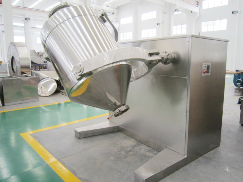 结构:该机由机座、传动系统、电器控制系统、多向运动机构、混合筒等部件组成。与物料直接接触的混合筒采用不锈钢材料制造,桶体内外壁均经镜面抛光。